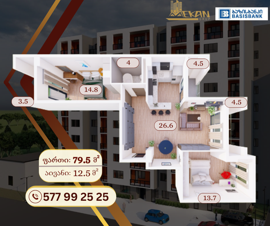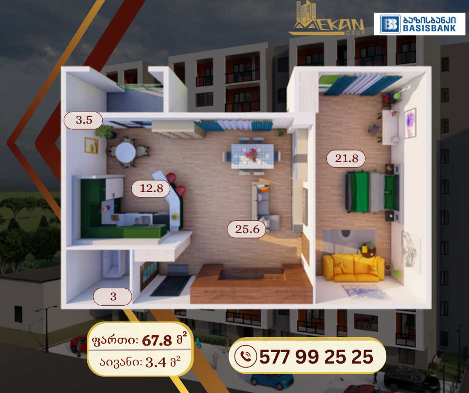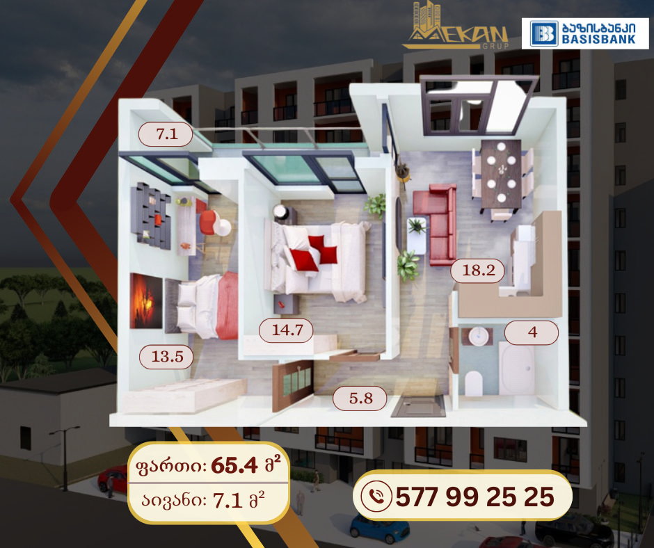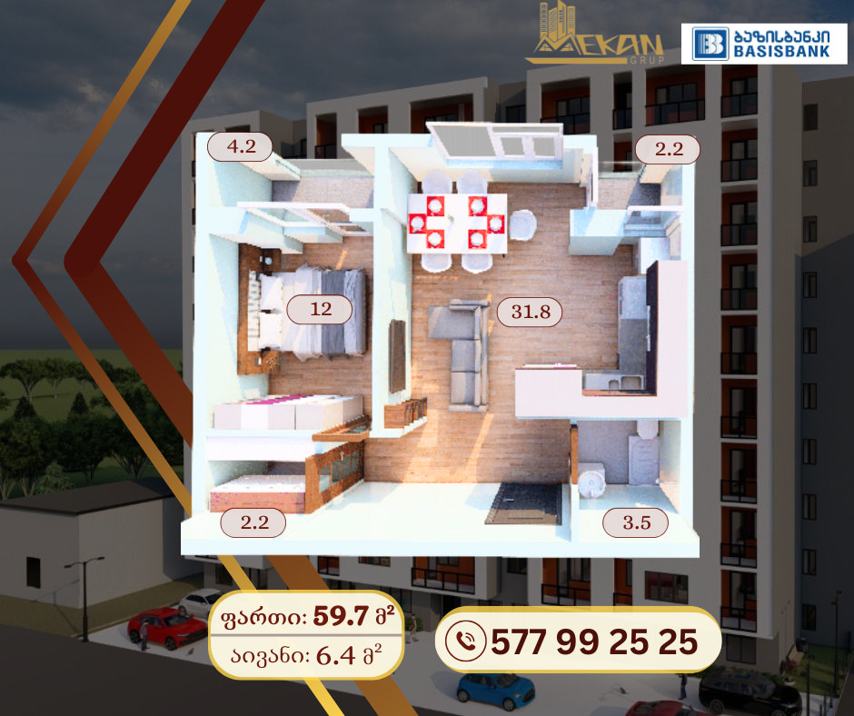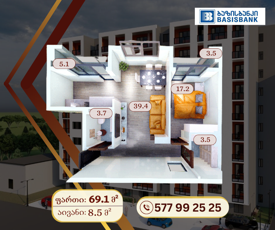 - მინიმალური ფართი – 39,5 კვ.მ.
